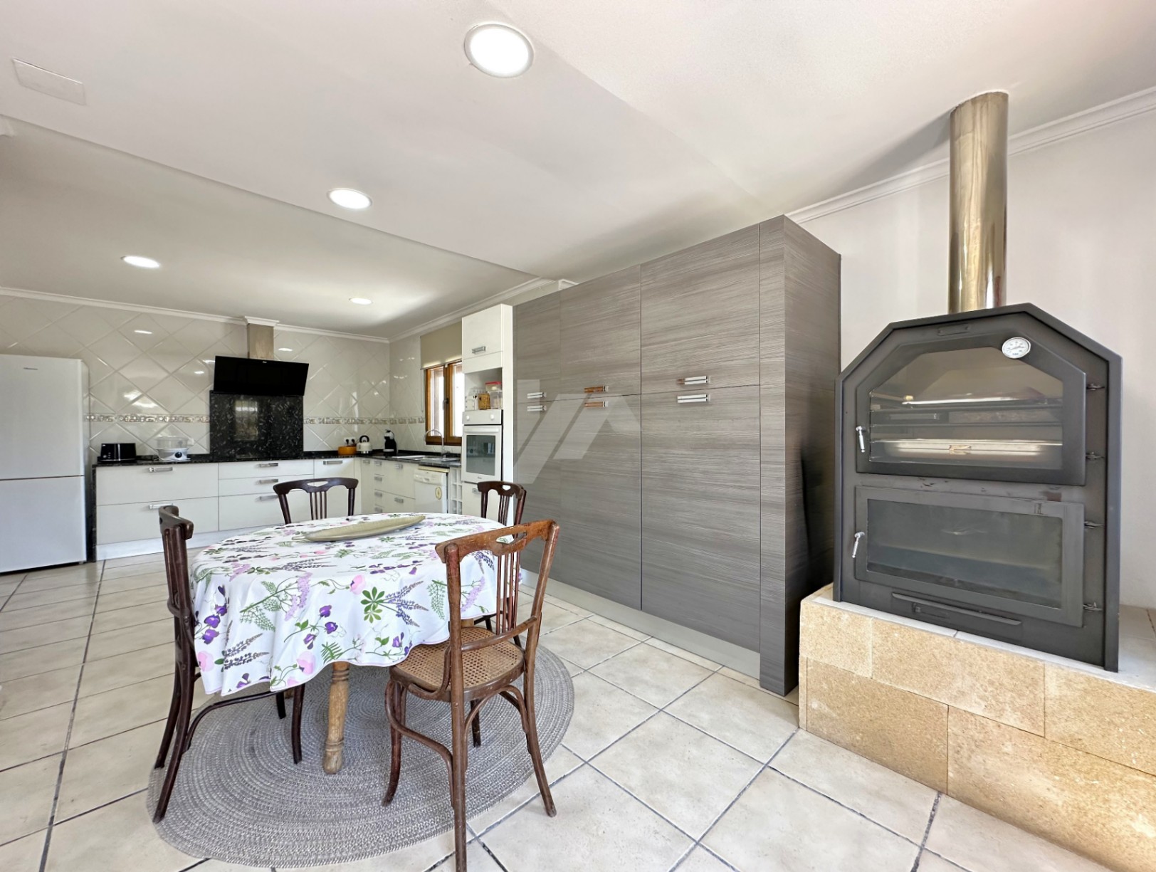 La casa tiene una superficie construida de 380m2 (337m2 habitables) y se asienta sobre un terreno vallado de 6020m2, con gran variedad de árboles frutales. El interior, distribuido en dos plantas, se compone de tres amplios dormitorios dobles muy luminosos, dos cuartos de baño, cocina equipada con horno industrial y varios salones (uno de ellos con chimenea).