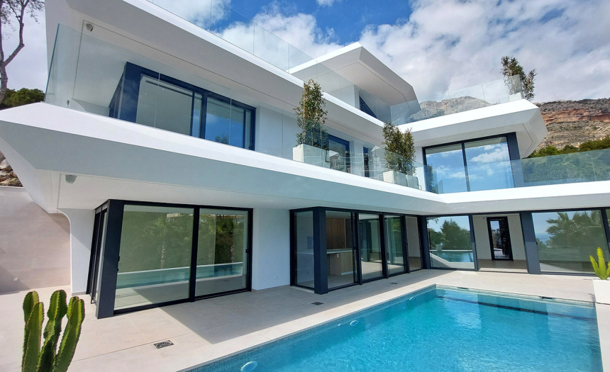 Espectacular chalet de obra nueva con impresionantes vistas al mar, a la venta en la Sierra de Altea. Recientemente terminado por una empresa constructora de prestigio, su localización es inmejorable, en una zona tranquila y segura, pero muy cerca de todos los servicios, del campo de golf de Altea y a tan sólo 7 minutos del mar en coche.