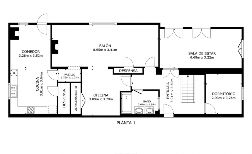 La casa, reformada en 2023, tiene una superficie construida de 380m2 (337m2 habitables) y se asienta sobre un terreno vallado de 6020m2, con gran variedad de árboles frutales. El interior, distribuido en dos plantas, se compone de tres amplios dormitorios dobles muy luminosos, dos cuartos de baño, cocina equipada con horno industrial y varios salones (uno de ellos con chimenea).