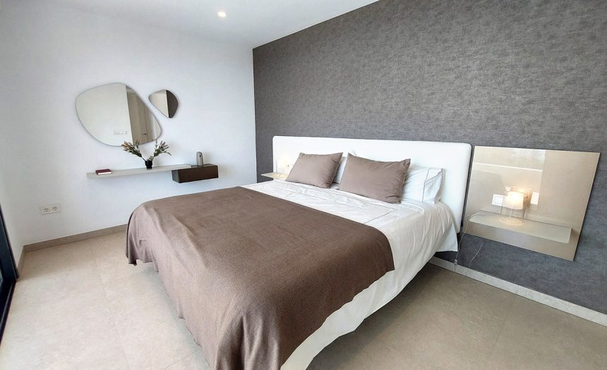 La planta media cuenta con tres dormitorios excepcionales, todos ellos con cuarto de baño en suite y amplios armarios empotrados. El dormitorio principal es simplemente espectacular, equipado con un generoso vestidor, cuarto de baño que incluye una relajante bañera y una terraza privada. Los otros dos dormitorios comparten una amplia terraza, igualmente con impresionantes vistas al mar.
