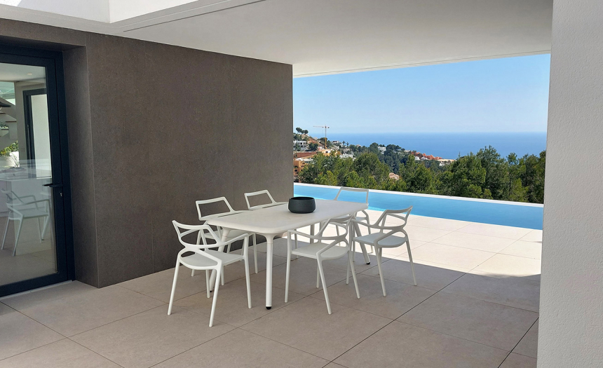 La villa ha sido diseñada con una arquitectura abierta al exterior, para que las vistas panorámicas del entorno paradisíaco de la Costa Blanca se conviertan en una parte esencial de la experiencia de vida en Villa Tempo.
